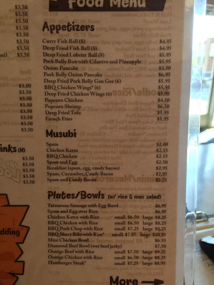 Hamburger patty, eggs and gravy over rice. Served with 2 scoops of rice and 1 mac salad.